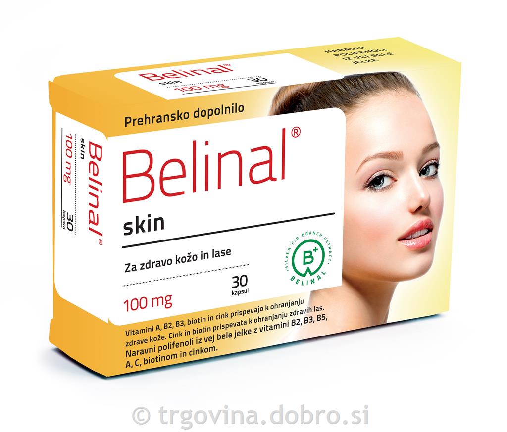 "Belinal® skin je revolucionarna lepotna formula in vsebuje uravnotežena mikrohranila za regeneracijo in zaščito kože: izvleček iz vej bele jelke Belinal® in naravne vitamine B2, B3, B5, A, C, biotin ter cink.