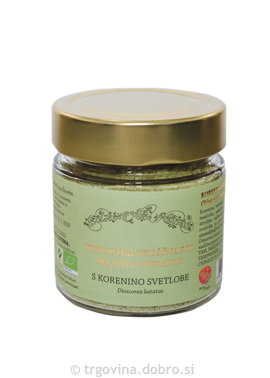 Kuhinjska zeliščna sol Majnika Premium je odličen naravni nadomestek za t. i. vegeto in umetne jušne osnove oz. kocke ter se uporablja za začinjenje vseh vrst slanih jedi – od juh in enolončnic do vseh vrst mesa, rib, zelenjave, solat, nadevov, omak, namazov … Vsebuje korenino svetlobe, ki ima zelo pestro sestavo hranilnih snovi (škrob, beljakovine, maščobe, aminokisline, saponine; polisaharide, sluzi, vitamine in 31 različnih elementov v sledeh) Posebnost korenine svetlobe paje njena zmožnost hranjenja svetlobnih etrov.