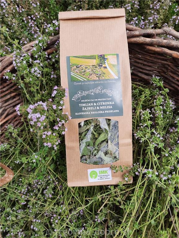 ČAJ OB PRAVEM ČASU je nastal v obdobju corona pademije. Strokovna literatura med drugim navaja, da timijan vpliva antiseptično in antibakterijsko v dihalih ter pomaga pri izkašljevanju; melisa ima protivirusni/virustatični učinek; žajbelj zavira nastanek vnetij; citronka pa čisti dihalne poti.